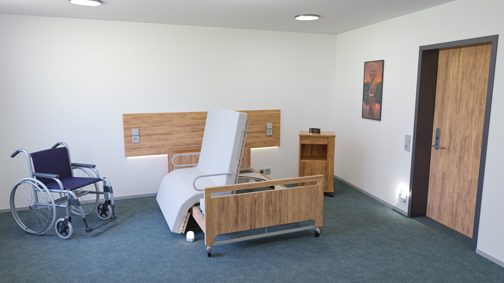 Ein Aufstehbett trägt zur Verbesserung der Lebensqualität, Eigenständigkeit, dem Komfort und der Mobilität des Patienten bei und ermöglicht ihm oft ein aktives Teilnehmen an seinem sozialen und gesellschaftlichen Umfeld. Die Liegefläche des Pflegebettes dreht sich vollmotorisch aus dem Pflegebett heraus, sodass der zu Pflegende am Bettrand sitzt und die Liegefläche optional zur Aufstehhilfe vollmotorisch angehoben werden kann. Es kann unter anderem durch ergänzendes Zubehör wie Bettgitter, Aufrichter, Wechseldruckmatratze beliebig erweitert und damit an die speziellen Anforderungen des Patienten angepasst werden und dient der Vereinfachung und Entlastung der Pflegetätigkeit von Angehörigen, Pflegepersonal und Patienten.
